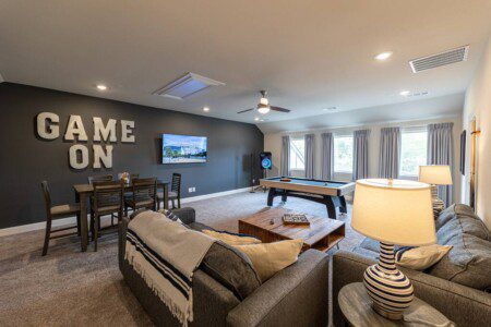 Get your competitive game on in our large game room with seating for everyone. Play pool, board games, or catch a movie on the 65-inch game room TV. Become the star of your group with your singing skills on the karaoke machine.