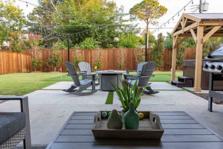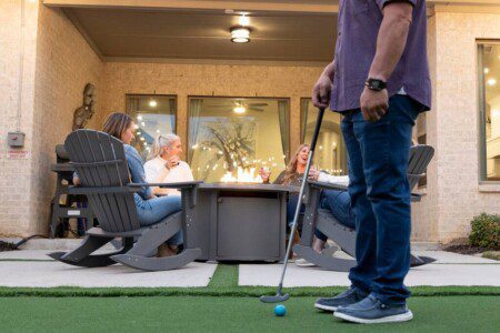 When the weather is nice, enjoy relaxing on the shaded back porch on our comfy outdoor lounge furniture, and enjoy the view of the Magnolia trees or play some mini golf on the private backyard putting green. Kids and adults of all ages can enjoy a game of mini golf.
