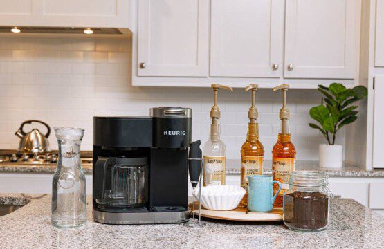 Calling all coffee and tea lovers! Our coffee bar has everything you need for the perfect cup. Choose from a variety of Keurig coffee pods, traditional drip coffee, and teas. Add your personal touch with flavored syrups, a milk frother, and creamer. We’ve even got hot cocoa for those cozy moments!